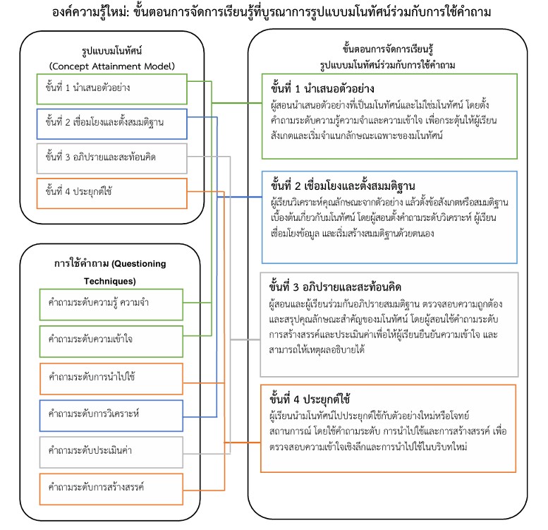 ผลของการใช้รูปแบบมโนทัศน์ร่วมกับการใช้คำถามที่มีต่อผลสัมฤทธิ์ทางการเรียนหลักภาษาไทยและความเข้าใจมโนทัศน์หลักภาษาไทยของนักศึกษาระดับปริญญาบัณฑิต